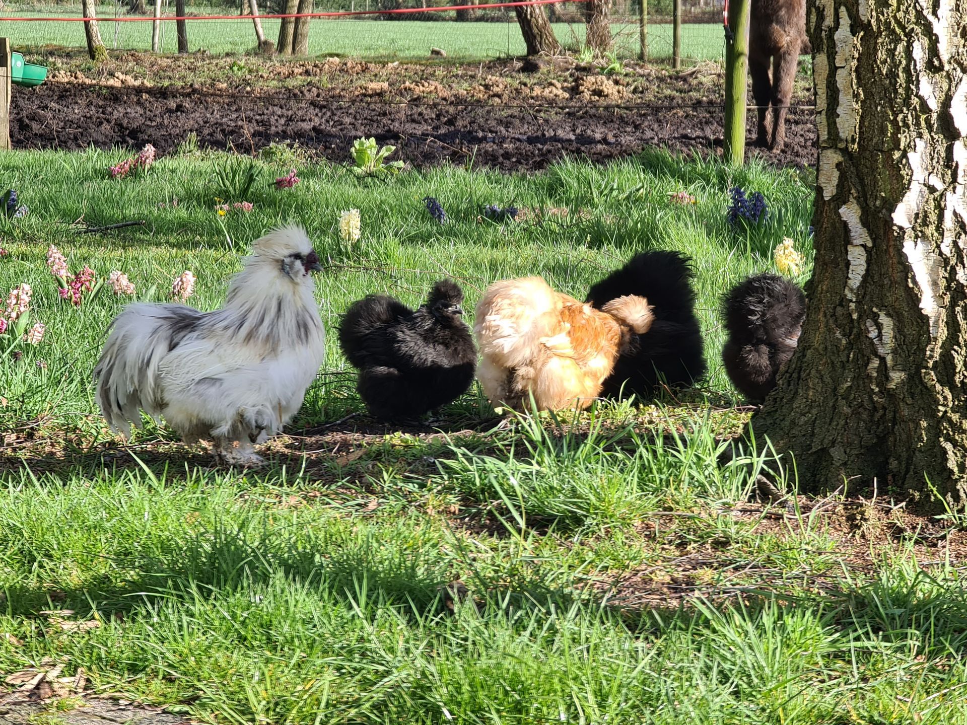 Op meerdere plekken op de boerderij vind je de kippenhokken, al lopen sommige kippen ook vrijuit op het erf rond. We hebben bijzondere kippen die van zichzelf gekleurde eieren leggen. De eieren worden elke dag geraapt om te verkopen in onze boerderijkraam. Kom gerust een keer langs!