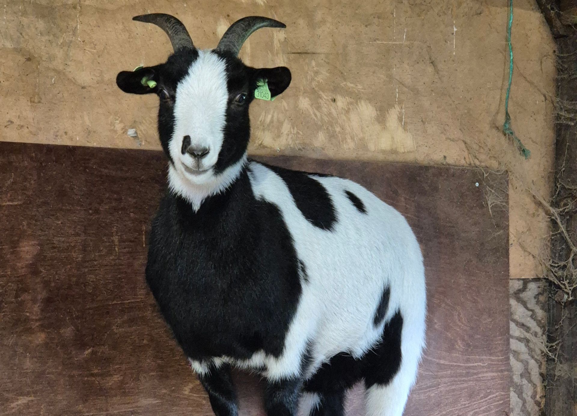 We hebben twee geiten die samen met de varkens hun eigen verblijf hebben. "S winters staan ze op stal in de hooiberg.