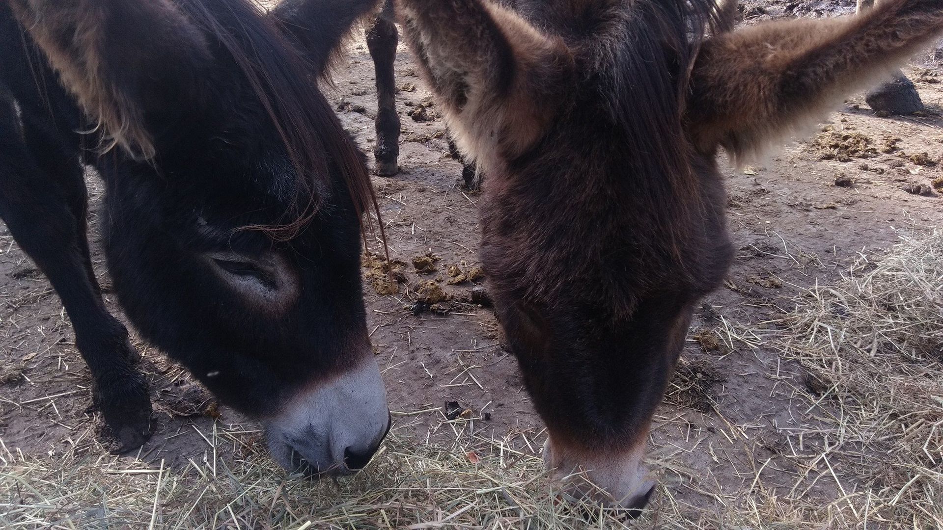 Tussen de paarden en koeien lopen ook ezels en muildieren. Ze zijn sterk aan elkaar gehecht en blijven vaak in een groepje bij elkaar staan. In de winter staan de ezels samen op stal.