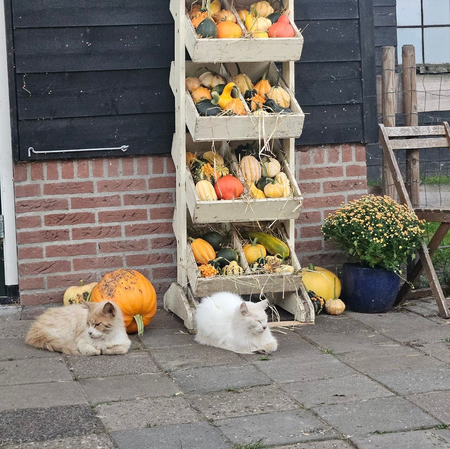 Als je op de boerderij loopt zijn ze onvermijdelijk: de poezen en katten. Ze lopen vrij uit over het hele erf en vinden overal hun eigen schuilplekjes. Ze zoeken vaak toenadeing bij de bewoners en begeleiding.